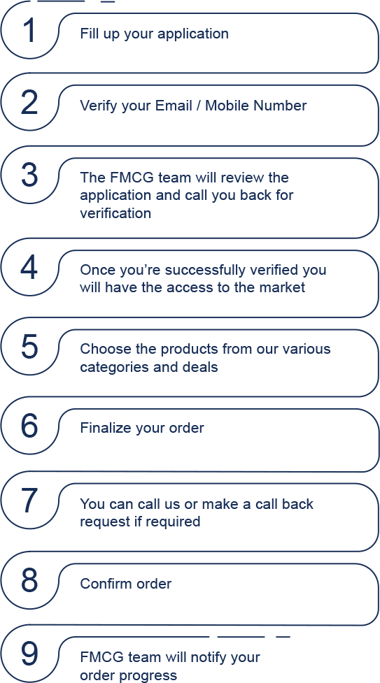 FMCG Markets that offers items into alternative independent channels. Our customer base reaches out to a diverse demographic so that no clash will occur with your present supply chain, both streams can co-exist pleasantly which provides a double benefit.